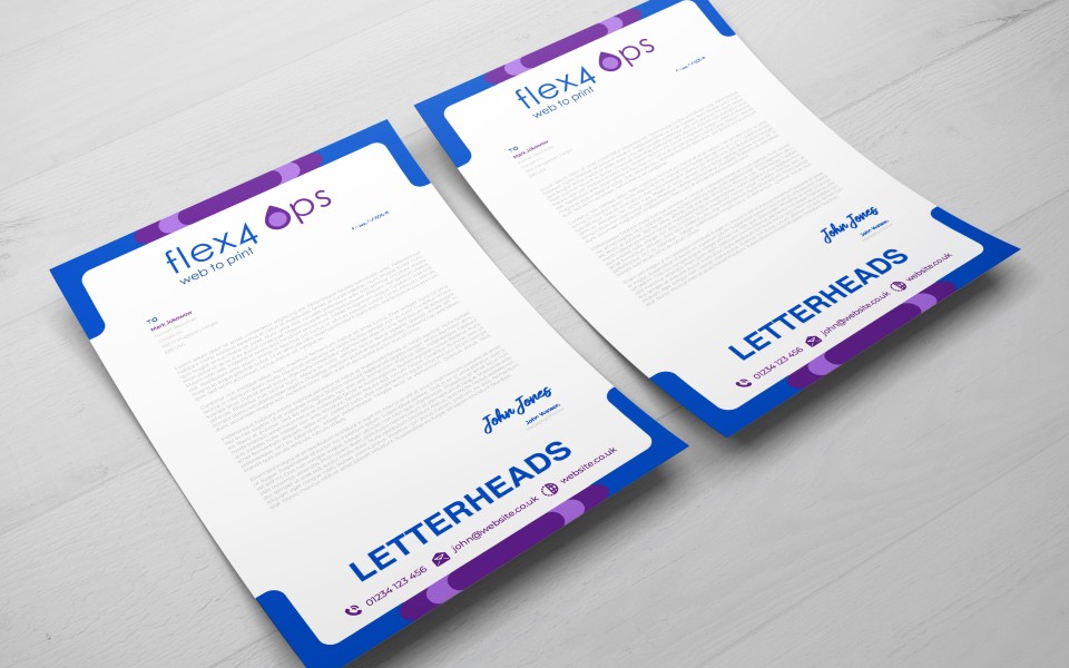 Letterheads A4 (297mm x 210mm). Litho printed in four colour process. Letterheads are still an essential stationery item for any business and to convey the right impression quality paper and print is essential.
